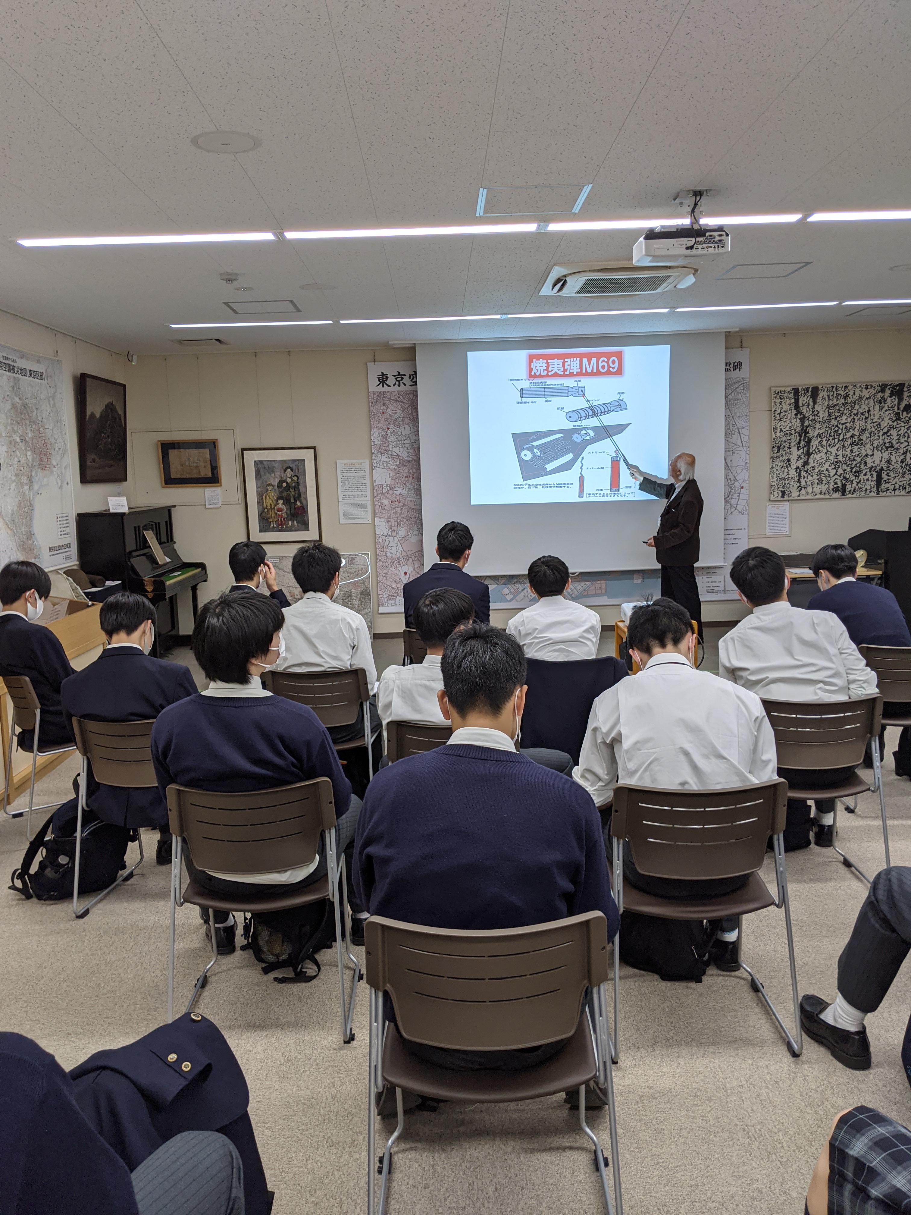 午後はみ全員江東区の「戦災資料センター」に集合し、DVDや講話を通じ、東京大空襲について学びます。
