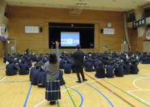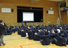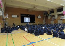 三年生がメインアリーナに一堂に会し、和やかな雰囲気の中、会が進んでいきます。